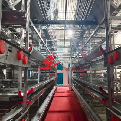 A gaiola de frango de camada possui um sistema automático de alimentação, reduzindo a quantidade de